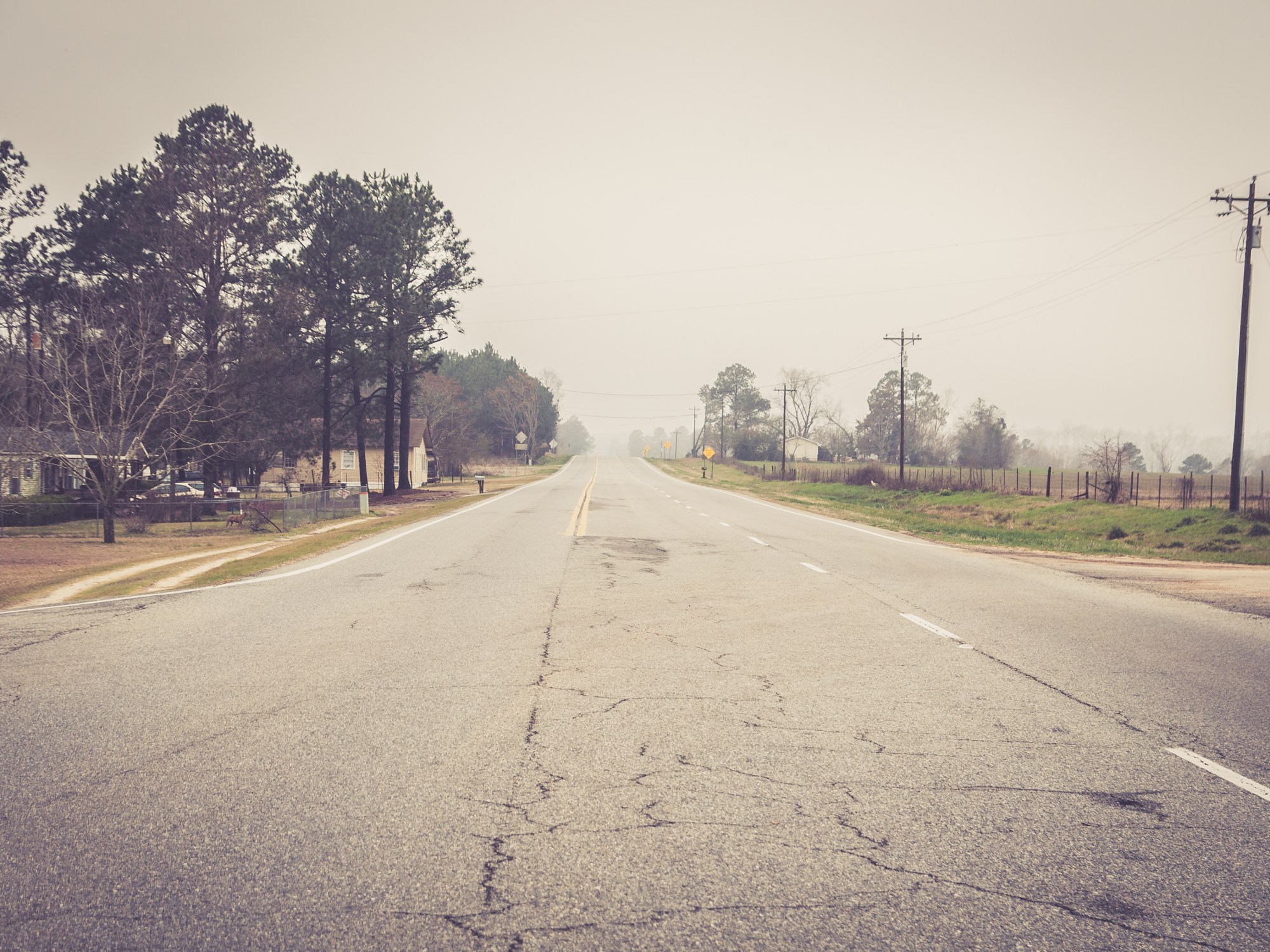 According to the weather channel we were setting out for our next adventure on what was promised as a warm and sunny day… But, once again we set off on what ended up being a cold and rainy day. To be fair once we got into south Georgia it was mostly just foggy with very little rain but still very cold. Either way we were determined to make it to Crystal Lake in Irwin County. Vanishing South Georgia (amazing pictures- check it out) was our inspiration for the day. All the pictures we could find of the abandoned water park were breath-taking. A really did her research to find the location. According to google maps there was an old check point but no actual gate blocking entrance to the park… However, just like the weather channel, Google maps lied! It seems that the park is now hunting property blocked by a gate with a million “NO TRESPASSING” signs advising that violators will be prosecuted. Seeing how neither of us feel we look all that great in stripes, and like I’ve said before A and I both still need our day jobs, this was unfortunately as far as we got. Rest assured we will be back… as soon as we can find a legal way in (that way everyone is happy).