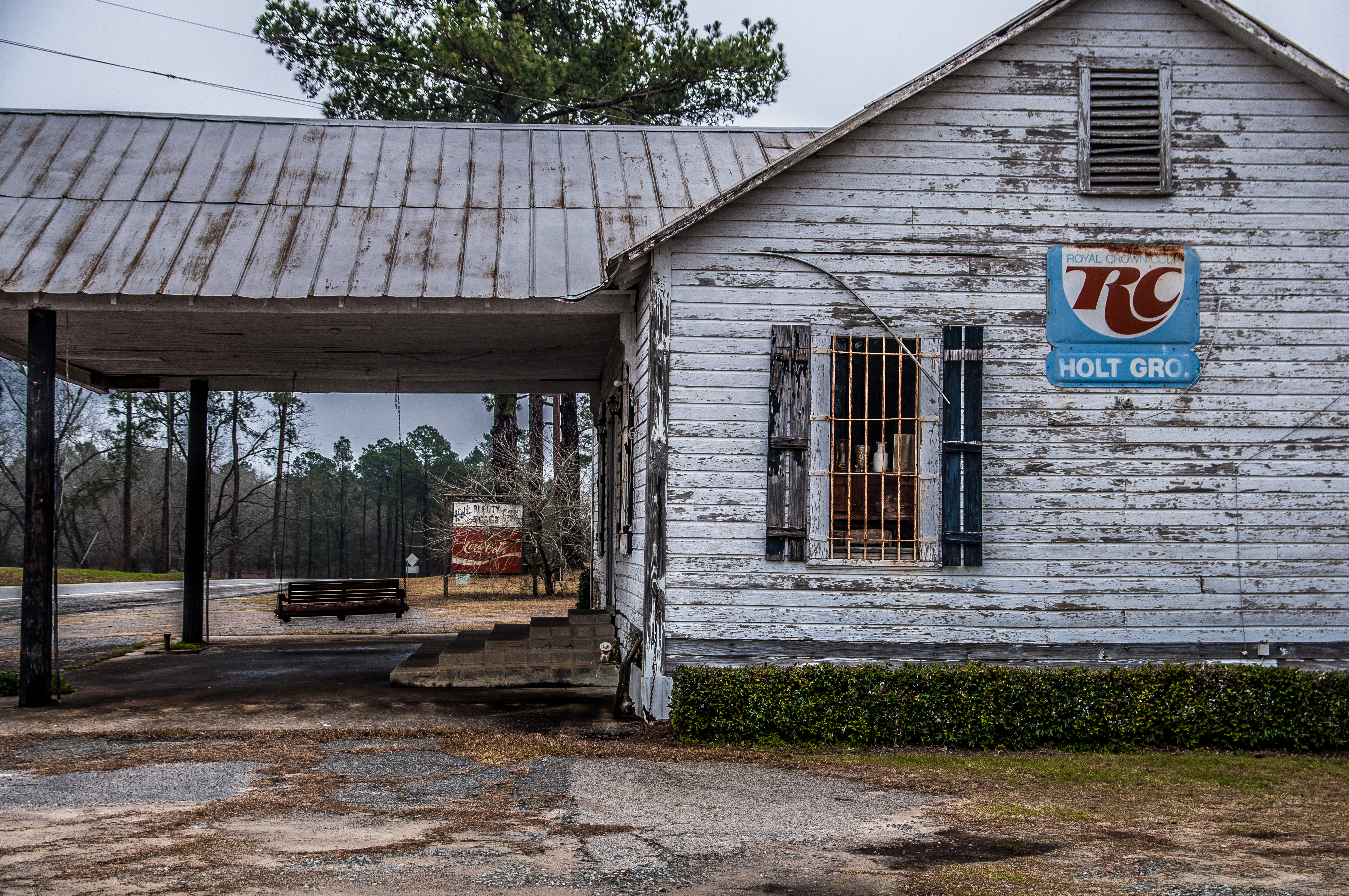 Ok so after I actually read the words on the blog we drive a little further (very little) into Holt and found just what we are looking for. I mean who would of ever guessed that Holt Grocery would be located actually in Holt. Thats just not logical. Am I right? Ok, I’m wrong, anyone could of guessed that. My bad. Holt Grocery is located on the corner of Hwy 32 and some other road (I have no idea what the road name is). A house sits right behind the building but no one came out for the few minutes we were there taking pictures. This little gem saved our trip from complete failure and brought our sprits back around.