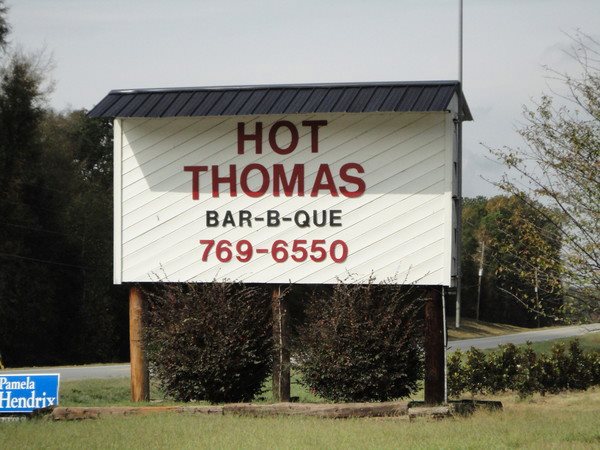 It was moved to its current location in 1924 and is one of the last remaining bridges in Georgia without underlying steal beams (I can read!). Without being able to walk down to the river the bridge probably wont be a long visit. But luckily for you, its on the way to our next stop. 5. Hot Thomas’ BBQ This is one hard place to take a picture of… unless you want a million cars in the parking lot… which I don’t. Thankfully Hot’s was nice enough to let me use the pictures off their facebook page (Hot Thomas’ Barbeque). Its a good down home place with great food. My favorite part has always and will always be the fact that your table gets its own pitcher of sweet tea to refill your drink throughout your meal (as long as you order tea…might be weird to refill a coke with tea).