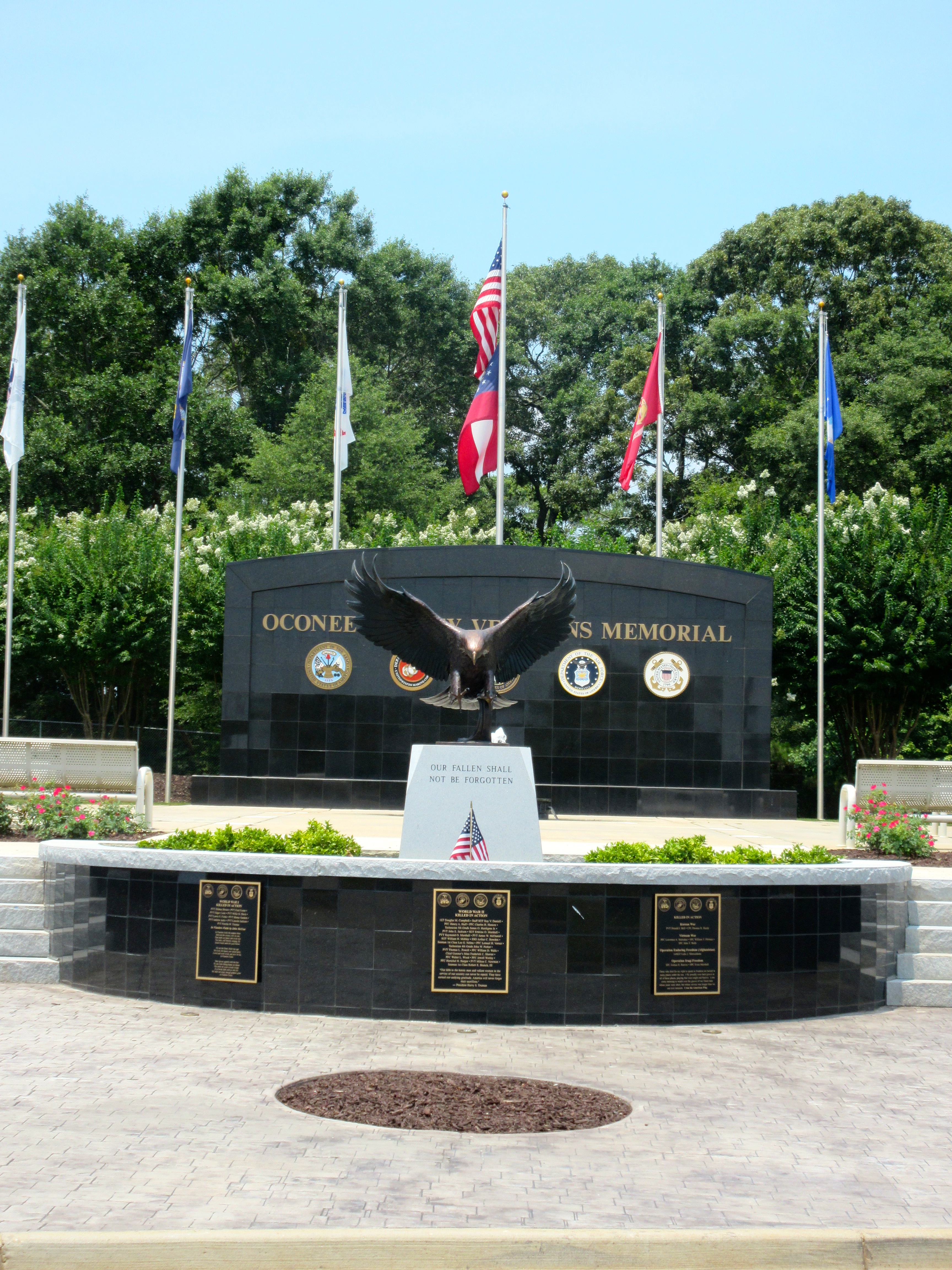 Oconee County, Georgia is a beautiful place. It’s where we got our start in exploring. Even though we love exploring abandoned and forgotten places, we wanted to let you know about a few other places that deserve a visit. Now A has been really busy with work. So that left me to take pictures for this blog. Unfortunately I have been really busy at work and with other things. So I took a day to run around and get pictures… that turned out blurry… because I didn’t check them… Once again proving why A is the photographer and I am not. 1. Oconee Veterans Park To be more specific, the Oconee Veterans Memorial located at the entrance of the park. Phase two was recently completed and adds to the beauty of the memorial. The park did a wonderful job honoring all branches of America’s Armed Forces, past and present.