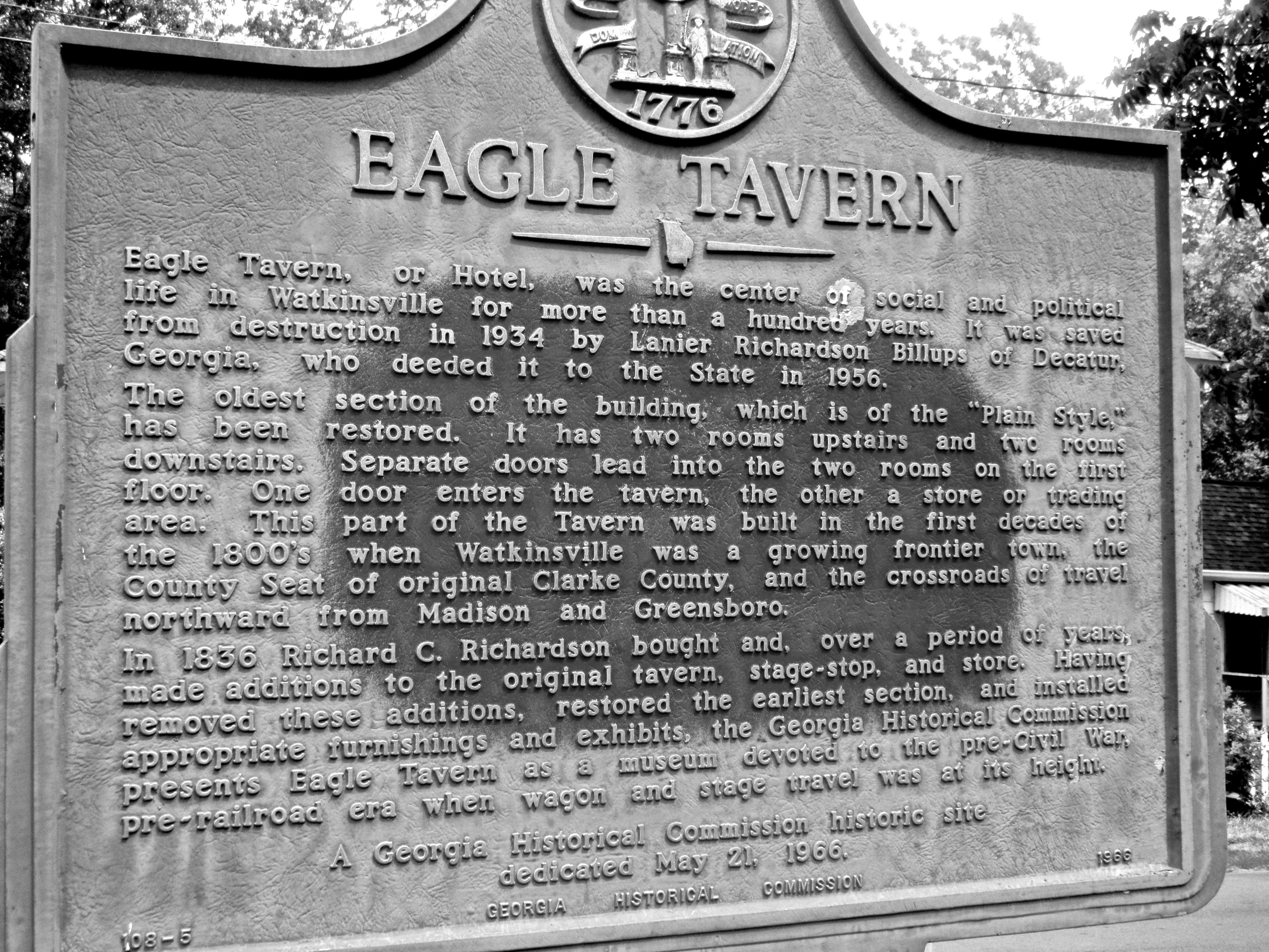 Harris Shoals park holds a lot of fundraisers and get-togethers during the year. It has multiple shelters that are available to rent for the day, but its free to visit. The worst part of the park is leaving- that is if you plan on turning left onto Experiment Station Rd. 3. The Eagle Tavern Located on Main St in downtown Watkinsville the museum is open Monday to Friday 10-4. I’m not sure if there is a cost to visit, I honestly haven’t been inside in years. I had plans to visit inside when I took the pictures but I didn’t get a chance to. Hopefully I will be changing that soon.