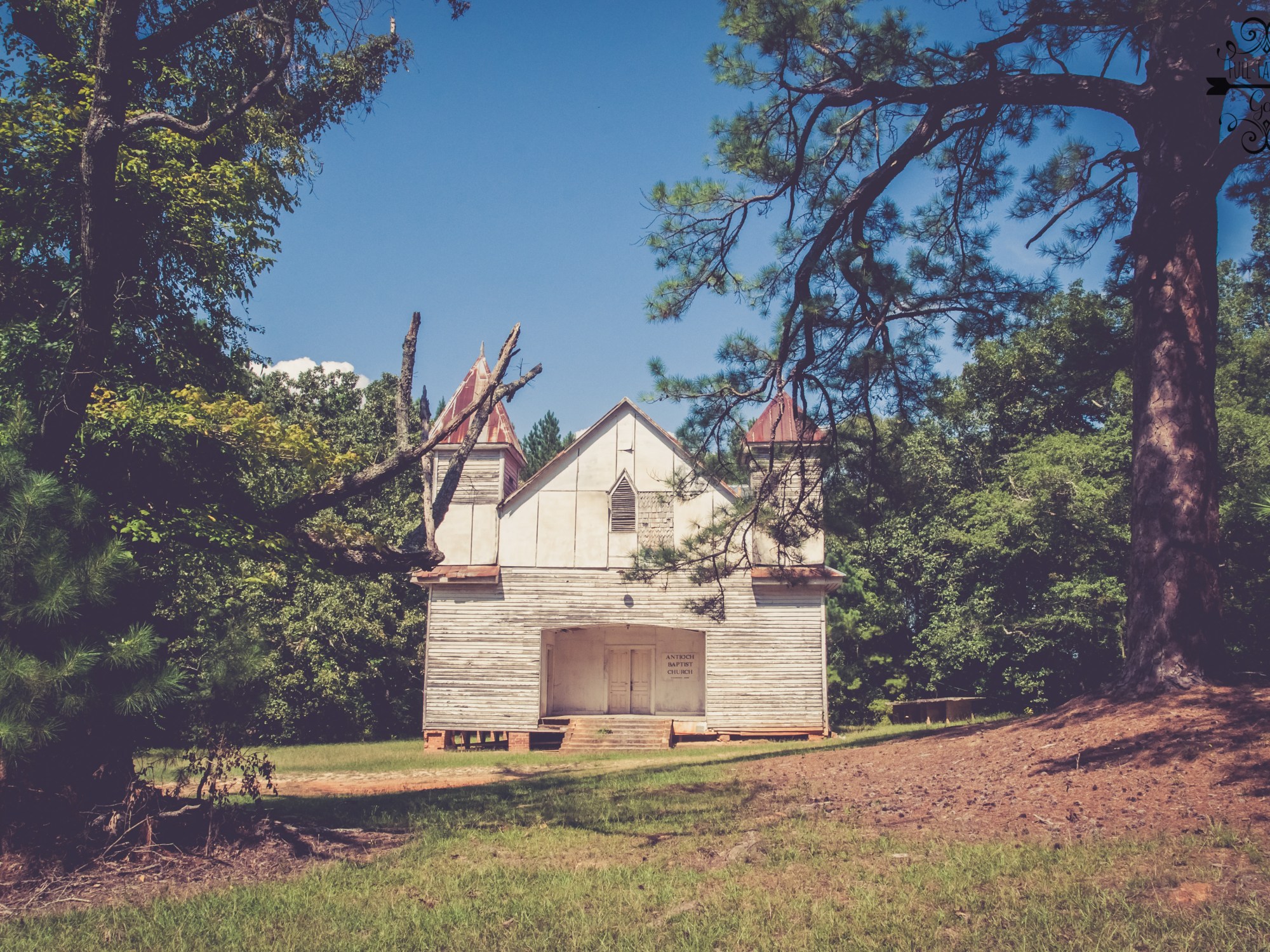 Antioch Baptist Church was founded in 1896 by family members of ex-slaves from the surronding areas. The Church building was build in 1899 on two acres of land granted for a cemetary. Some publications say the orginal church burnt down and was rebuilt in 1923. I would be prone to believe them, honestly why would you lie about that?